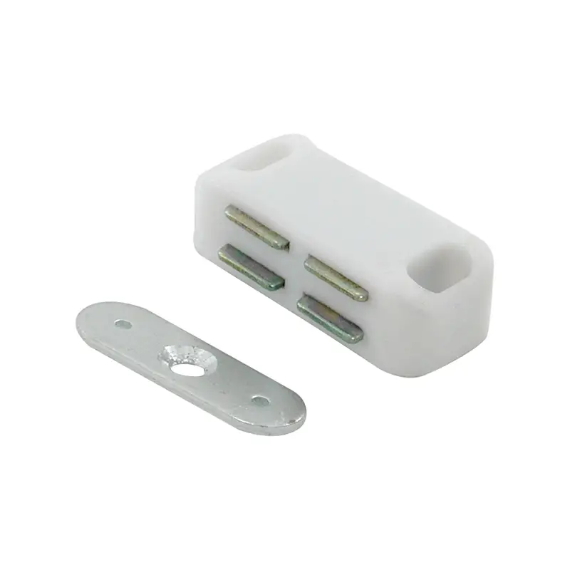 Magnet catches are essential and versatile components used in cabinetry and furniture, serving as efficient and subtle closure mechanisms. Constructed with small magnets typically housed within a durable casing made of materials such as plastic or metal, these catches create a secure and discreet method of keeping cabinet doors, drawers, or other compartments closed. When the door approaches the cabinet frame, the magnet within the catch attracts a metal strike plate, holding the door firmly shut without the need for visible hardware. Double roller catches are indispensable fixtures used in cabinet doors or drawers, designed to secure them in a closed position effectively. Consisting of two rollers connected to a spring-loaded mechanism within a housing, these catches utilize friction to keep doors or drawers closed.